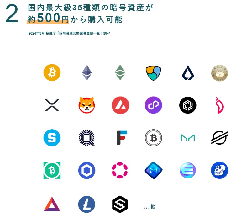 ・国内最大級の35種類の仮想通貨を取り扱い