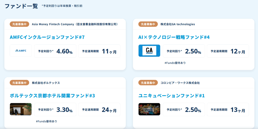- Fundsの投資案件の安全性